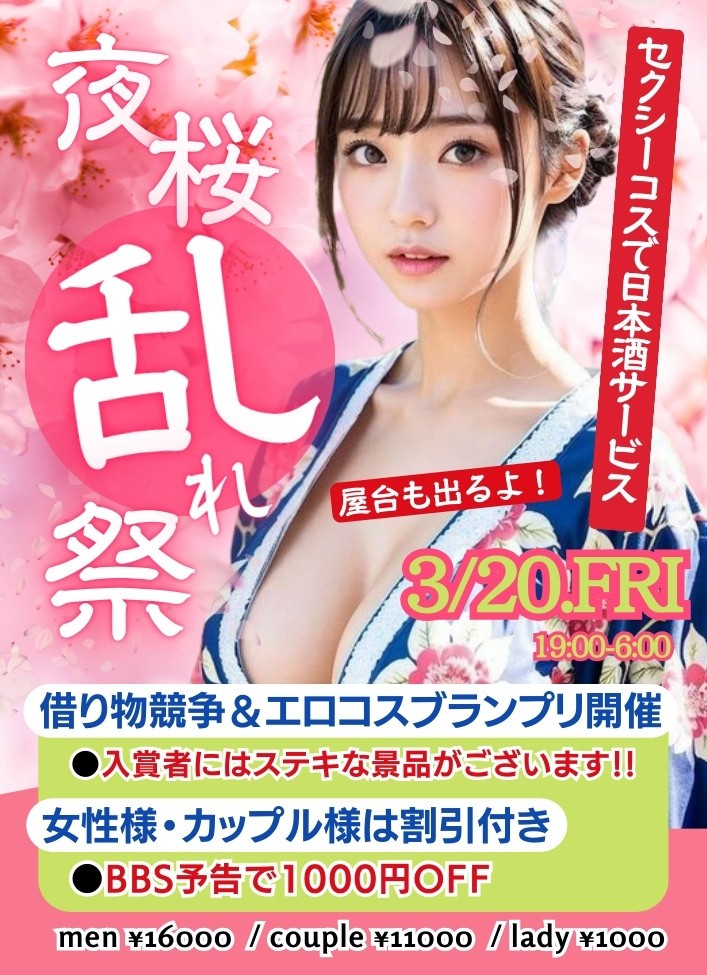カップル様・単独女性様はBBSに来店予告で1000円OFF♪
